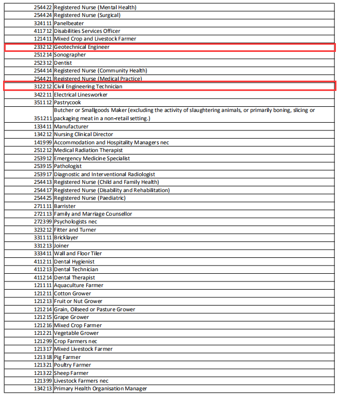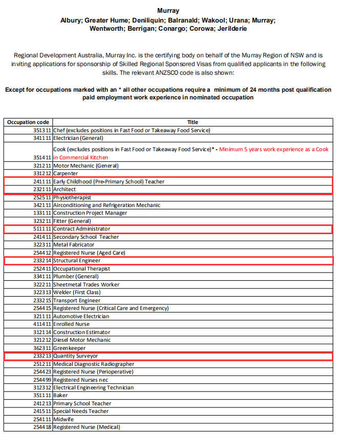 Murray地區職業列表更新,建筑師、合同管理員、結構工程師、交通工程師、工料測量員、土木工程技術員等職業在清單上。