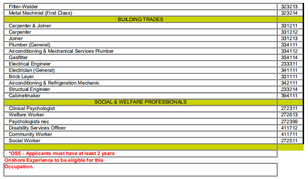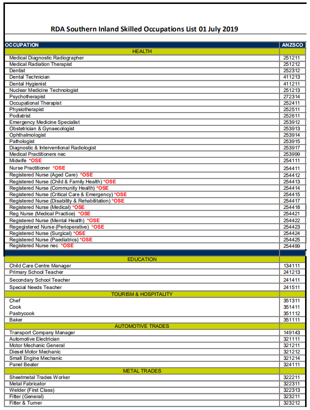 Southern Inland官網顯示目前489還是關閉的,具體日期等通知,不過職業清單先發布了。以下是新職業列表: