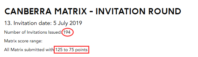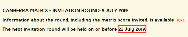 2018年11月29日,ACT堪培拉190州政府擔保正式引用Matrix打分系統,2018-19財年一共發出了12輪邀請。