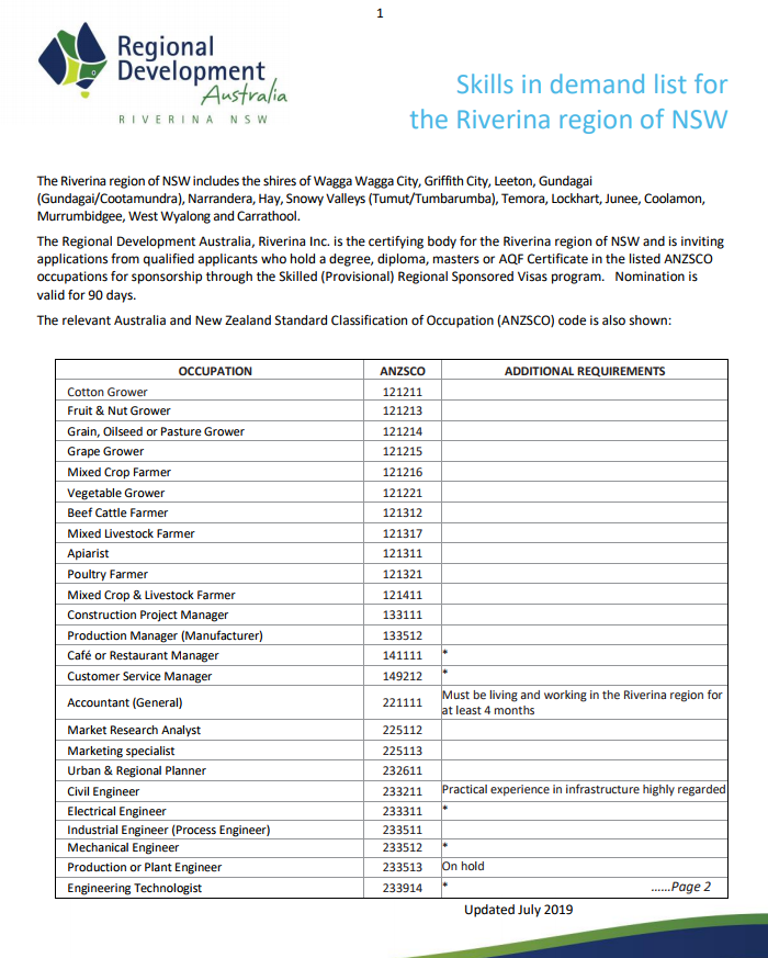 伴隨著州擔保開放申請,Riverina擔保的489職業(yè)列表也出來了!