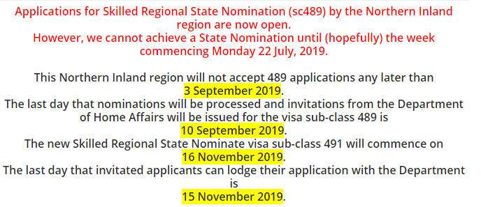 不過,雖然可以遞交申請了,Northern Inland表示可能要到下周一也就是7月22號才會開始提名工作。