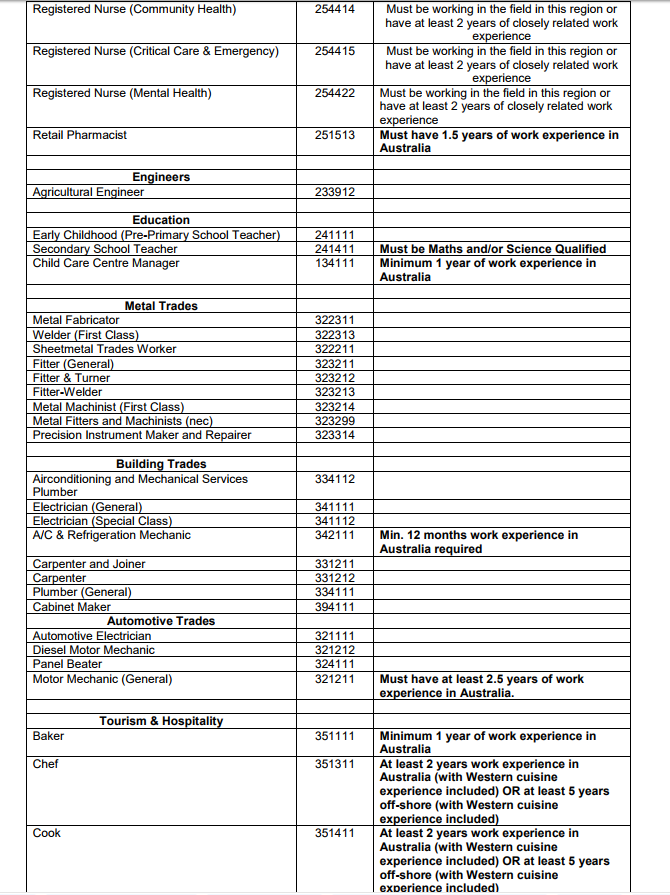 技工類職業(yè)比較多,還是廚師、電工那些工種。2個廚師職業(yè)都是要求2年澳洲工作經(jīng)驗的。