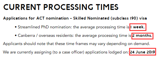 堪培拉政府目前已經審理至2019年6月24日遞交的申請。