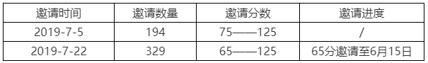 邀請分數:所有70分—125分,65分邀請至6月15日
