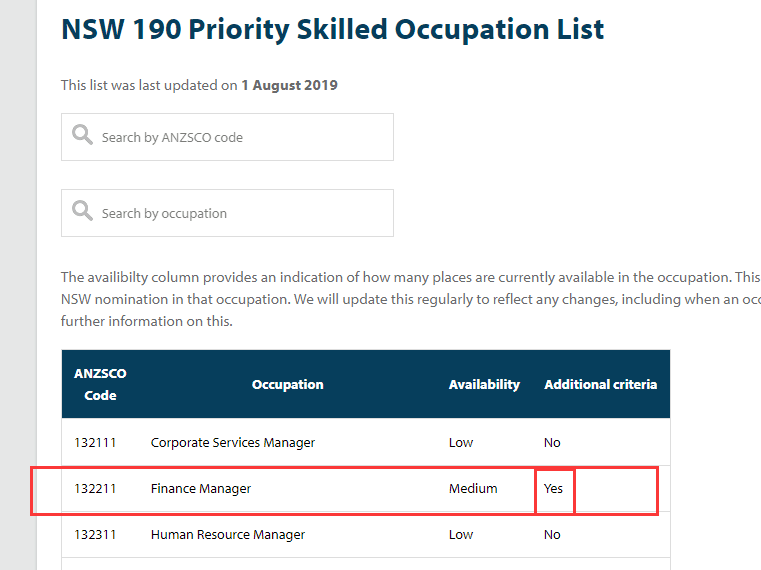 132211 Finance Manager 變為需要滿足額外要求,即要求在新州居住,且至少一年新州本地提名職業的工作經驗。