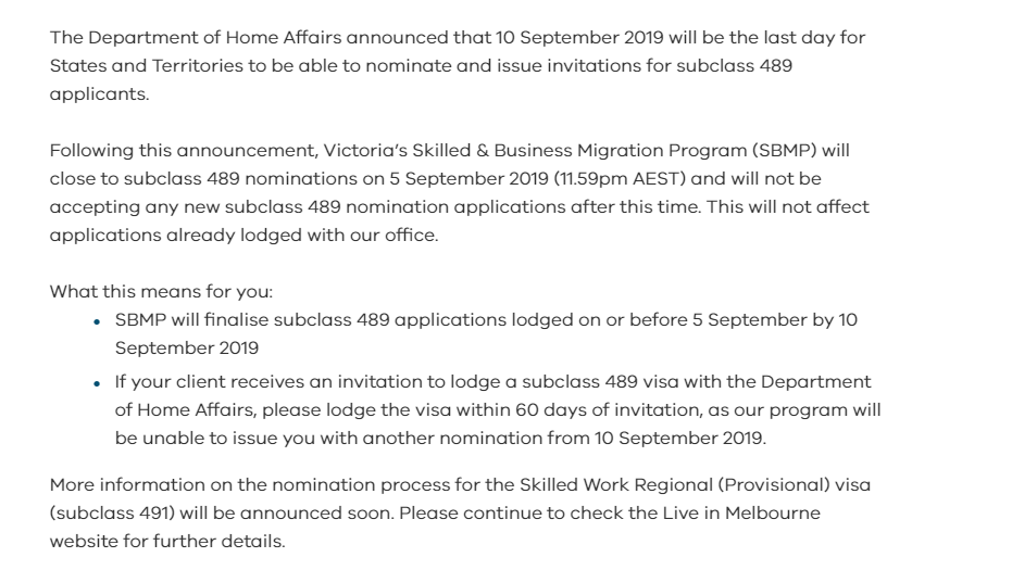 請注意:維州489州擔9月5號關閉,只剩最后一個月,抓緊時間辦理!!!