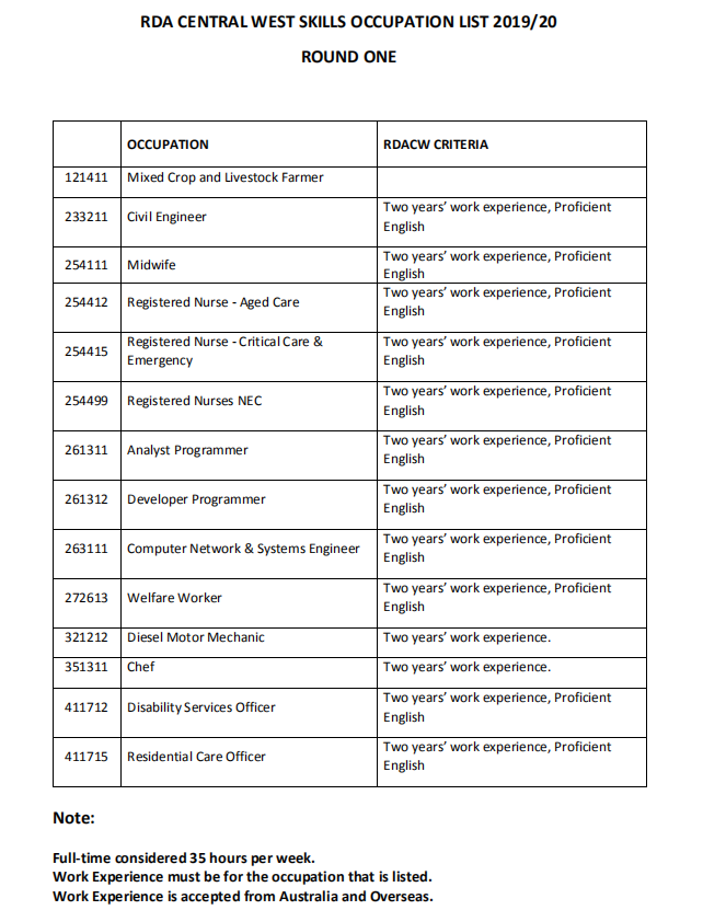 幾乎所有職業都要求2年工作經驗,Full-time的標準是每周35h。另外,大部分職業都要求Proficient English即雅思7分或PTE 65分。通過以上開放的職業清單可以看到,雖然開放的職業種類并不是很多,但土木工程師233211和IT類261311、261312以及263111職業都在清單上,可見偏遠地區對這兩類職業的需求還是非常大的。另外,護理類254412、254415、254499以及社工和廚師也都在。僅121411 混合作物和牲畜農民一個職業無額外要求,只要滿足以下條件即可: