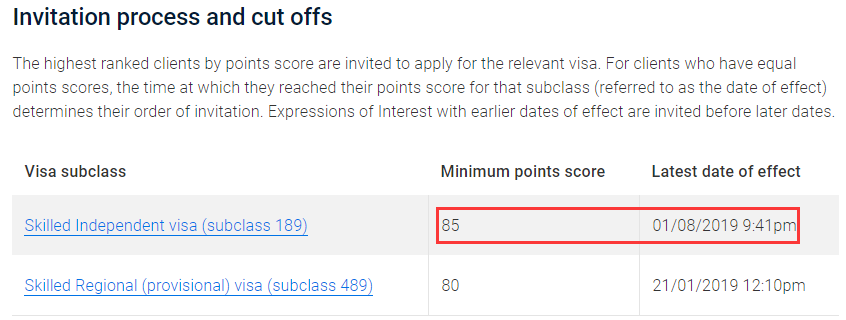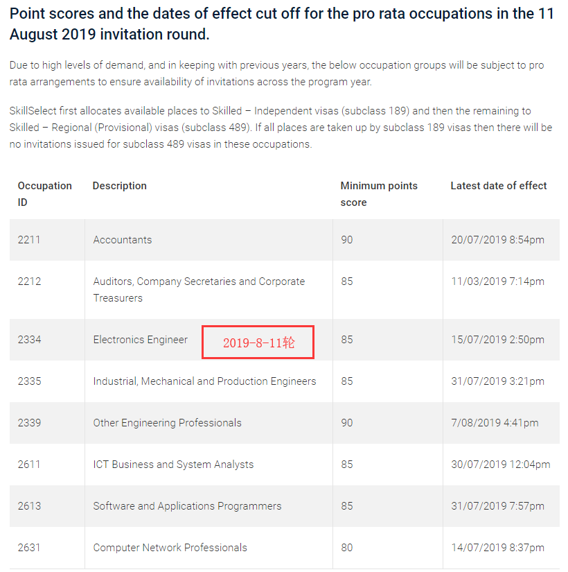 2335工業、機械和生產工程師本輪85分獲邀,邀請到2019年7月31日,僅邀請了9人,上輪80分邀請到2019年5月10日。