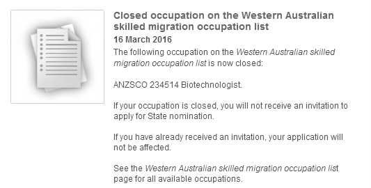 3月16日西澳移民官網(wǎng)發(fā)出通知:ANZSCO 234514 Biotechnologist