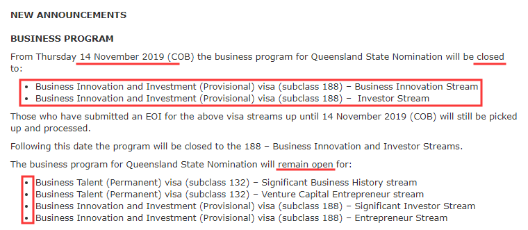 從11月14日起,昆州將關(guān)閉188A商業(yè)創(chuàng)新和188B投資者簽證的州擔(dān)申請。在此日期之前收到的申請會繼續(xù)審理。