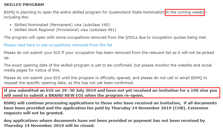 昆州本財年在7月29日開放,僅開放2天名額就被搶空宣布關(guān)閉了。對于7月29日和7月30日遞交190州擔(dān)申請但還未獲邀的朋友,昆州重開之后您需要重新遞交EOI。