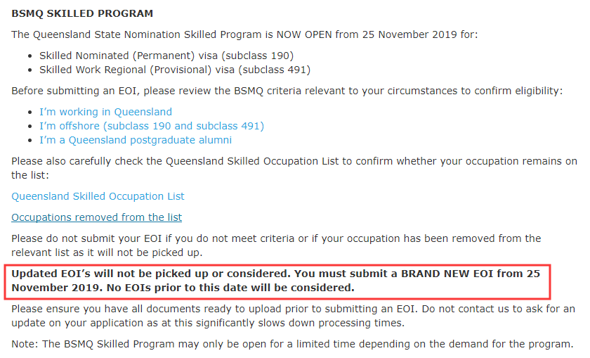 今日,昆州官網公告開放技術移民190和491州政府擔保,并將大家期待已久的職業清單公布出來了。申請人需要重新遞交EOI,之前已遞交過再更新的EOI將不予考慮。