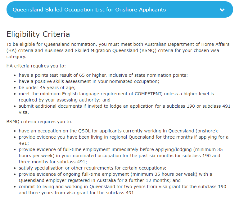 l 申請190州擔保,要求過去6個月在昆士蘭從事提名職業全職工作(每周至少35小時);