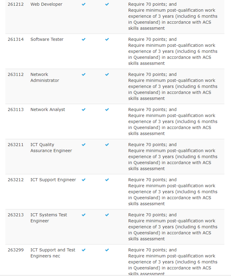 完整昆州offshore職業清單請點擊網址查看:https://migration.qld.gov.au/skilled-occupation-lists/
