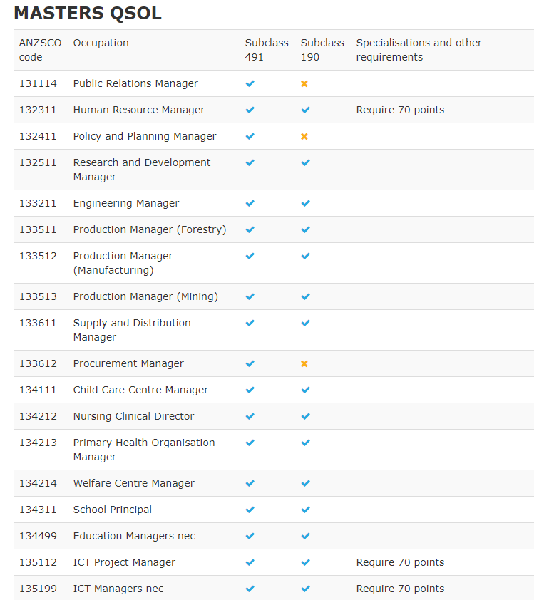 完整昆州master畢業生職業清單請點擊網址查看:https://migration.qld.gov.au/skilled-occupation-lists/