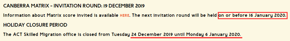 圣誕節將至,堪培拉技術移民辦公室從2019年12月24日(星期二)至2020年1月6日(星期一)關閉。