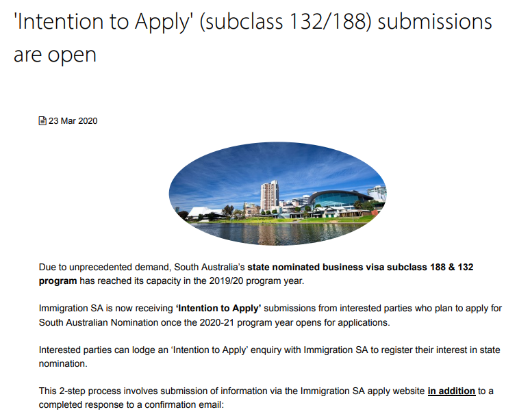 今天,南澳州政府公布了新申請方式‘Intention to Apply’ 的具體信息。
