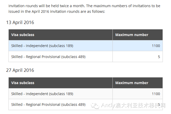 4月份移民局EOI邀請第一輪將于4月13日發出,第二輪將于4月27日發出。分別將發出1100份189簽證邀請,5份489簽證邀請。
