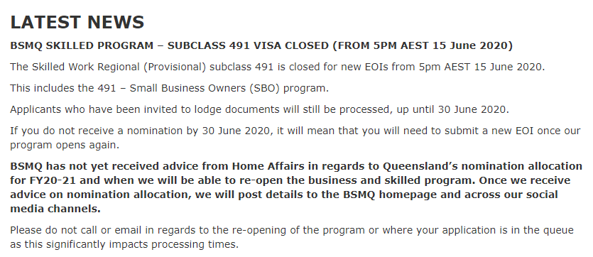 但是!如果直到6月30日還沒有收到州擔提名,那么申請人需要在下個財年昆州州擔開放的時候重新遞交EOI申請。