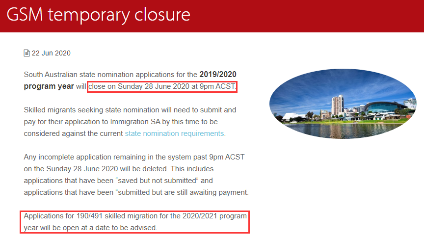 南澳州官網今日發出通知:本財年的南澳擔保提名將于6月28日(星期天)晚上9點關閉申請。