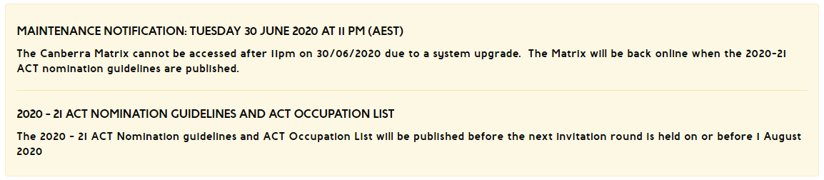 堪培拉州擔Matrix系統將會于2020年6月30日晚上11點進行維護,屆時系統將無法登陸。