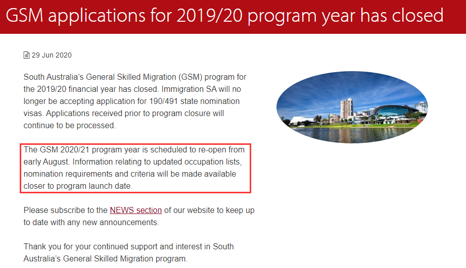 【南澳】州擔保已正式關閉,新財年預計8月初重新開放。