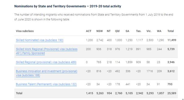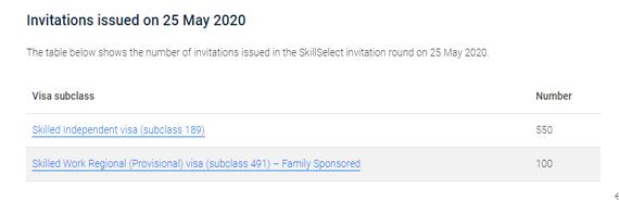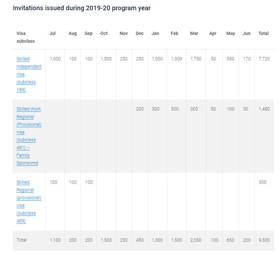 189邀請到2020年3月遞交的申請,491親屬邀請到2019年12月遞交的申請。