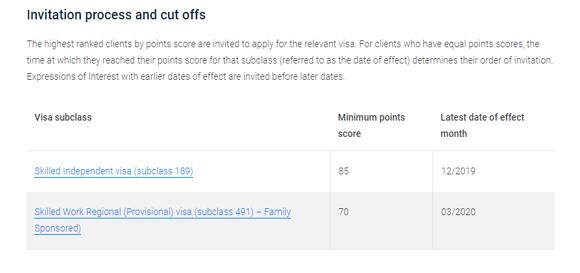 非熱門專業189邀請85分獲邀,邀請到2019年12月遞交的申請;491偏遠地區親屬擔保70分獲邀,邀請到2020年3月遞交的申請。