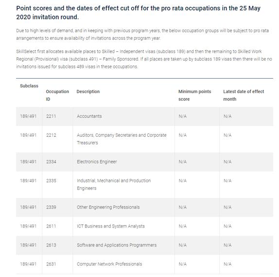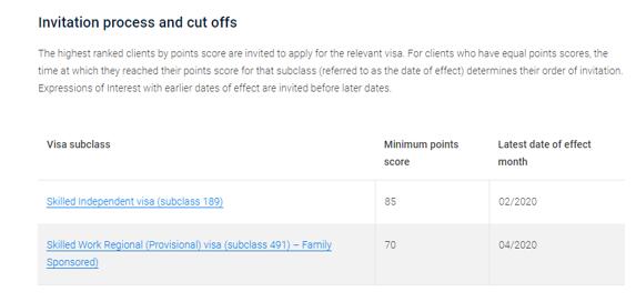 非熱門專業189邀請85分獲邀,邀請到2020年2月遞交的申請;491偏遠地區親屬擔保70分獲邀,邀請到2020年4月遞交的申請,相較5月份推進了1個月。