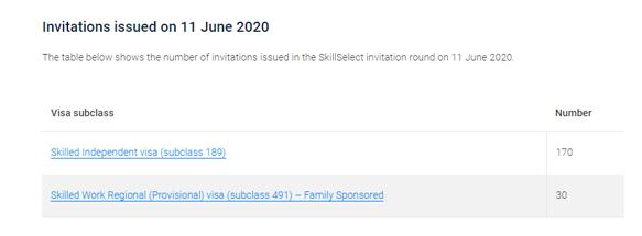 189獨立技術移民邀請170人;491偏遠地區親屬擔保邀請30人。