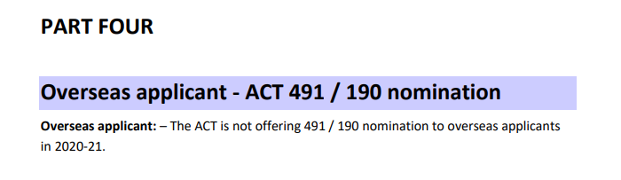 很遺憾,2020-21財年堪培拉190/491州擔保不針對海外申請人開放申請。