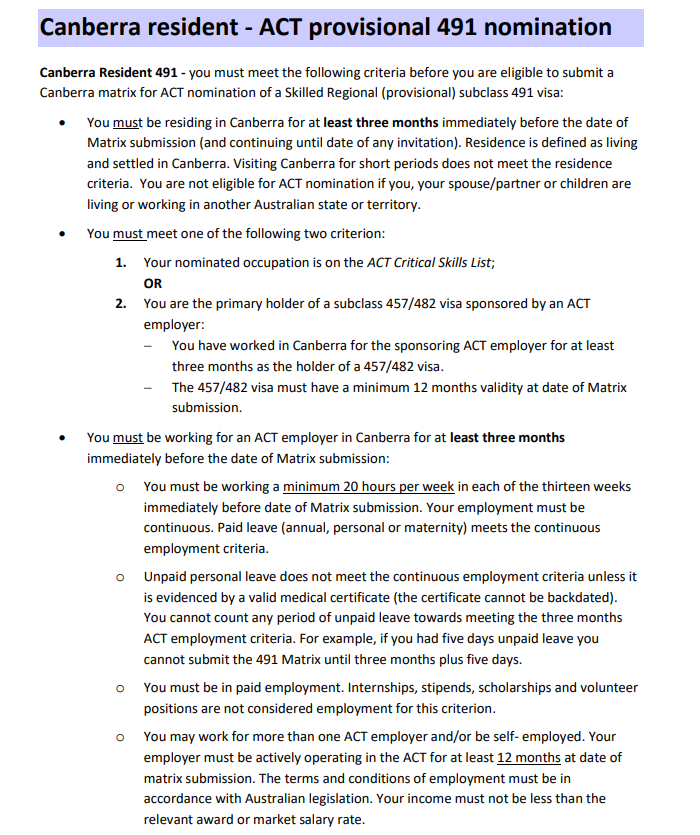 總結重點:職業在critical list上的申請人可以遞交190或491,最大區別在于工作經驗方面。遞交Matrix申請前,491要求工作3個月,而190要求6個月全職工作。