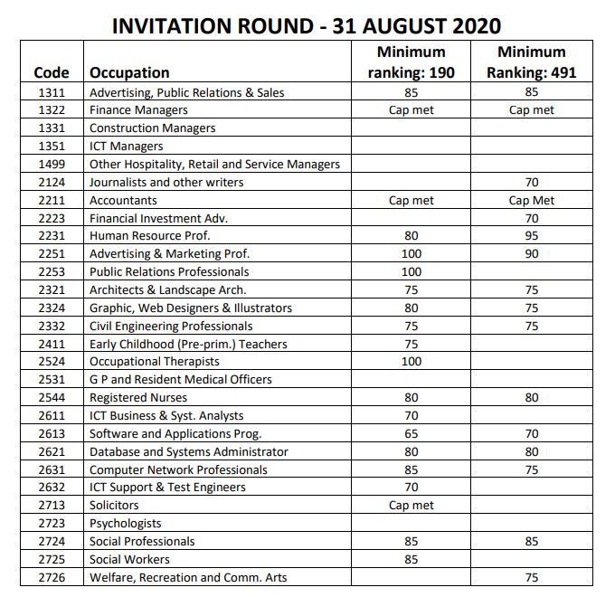 8月19日,堪培拉針對境內居民類別公布了新財年的提名要求并開放190/491州擔保申請,緊接著于8月20日立即發放了一輪Matrix邀請。