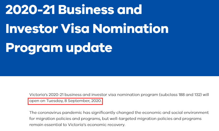 2020-21財年維州商業和投資移民簽證(188和132類別)已于今日2020年9月8日上午9點(澳洲東部時間)正式開放!