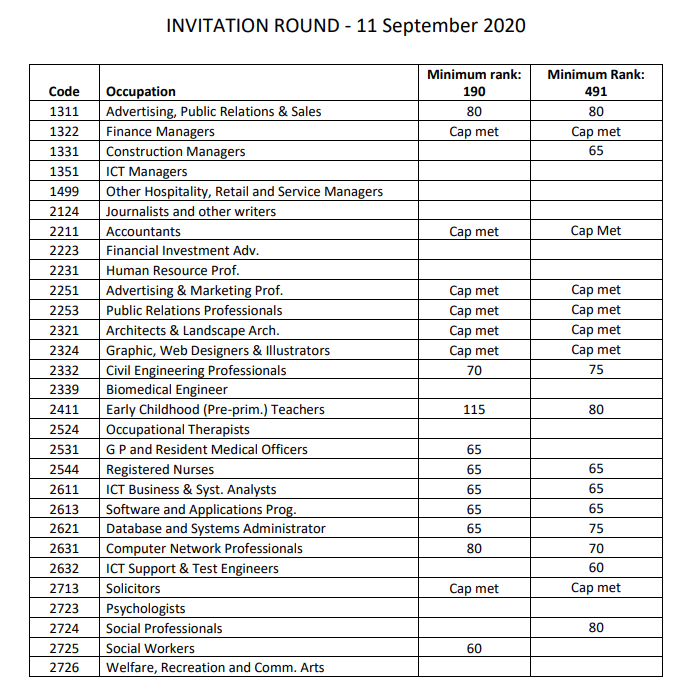 針對457/482簽證持有者發出12個邀請,190和491各6個;