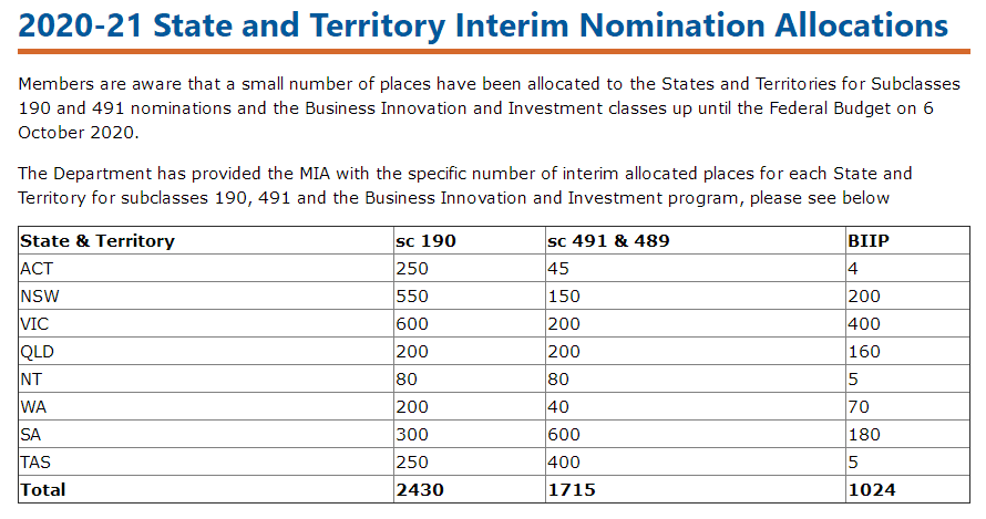 技術移民簽證方面,維州的190是最多的,有600個。其次是新州有550個,南澳300個。北領地最少,只有80個。491的配額南澳則是最多的,有600個,塔州400個,西澳最少,只有40個。