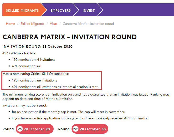 堪培拉Matrix的邀請原則是優(yōu)先邀請Matrix分?jǐn)?shù)較高的申請人,所以,只有在本組職業(yè)類別中分?jǐn)?shù)越高,排名越靠前,才更有機(jī)會獲邀。