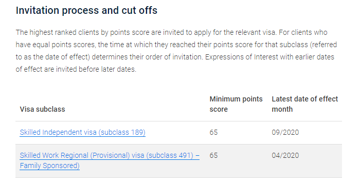 491親屬擔保本輪65分獲邀,邀請到2020年4月的遞交的申請。