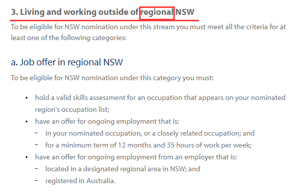 更新后第三類申請人為:Living and working outside of regional NSW