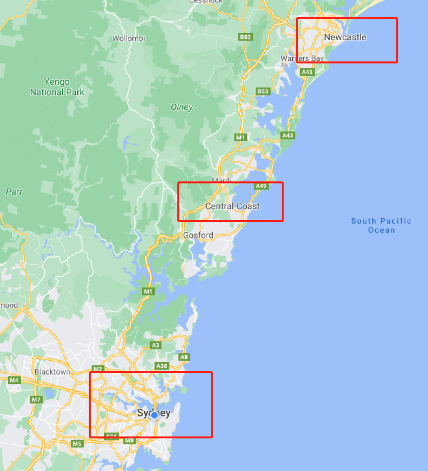 本次主要增加了Hunter、Illawarra、Central Coast、Sydney等地。