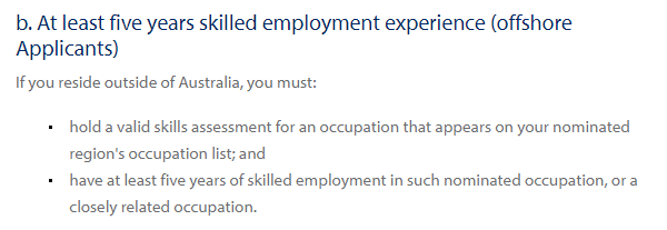 b. 至少有5年提名職業關的工作經驗(海外申請人)