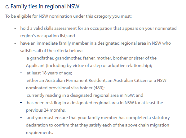 l在新州指定偏遠地區有直系親屬,親屬需要滿足以下條件: