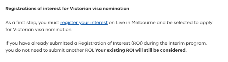 2. 在維州官網提交Registration of Interest ,由維州綜合評估并挑選合適的申請人;