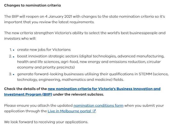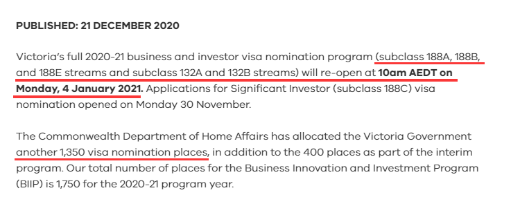 維州投資移民188A,188B,188E,132A和132B將于2021年1月4日上午10點重開!