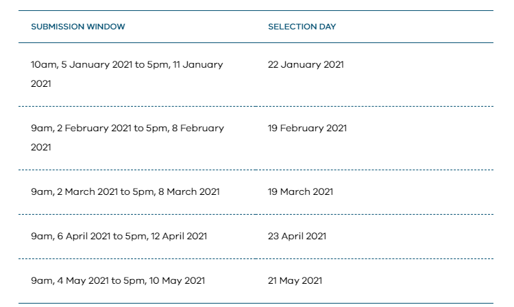ROI的提交窗口期(Submission Window)和篩選日(Selection Day)的時間表如下: