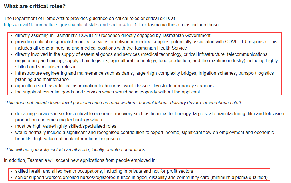 l提供關鍵或專業的醫療服務或運送醫療用品以應對COVID-19,包括塔斯馬尼亞衛生局的所有普通護理和醫療職位;