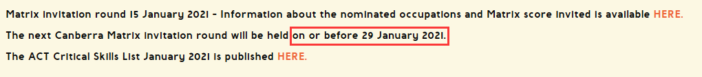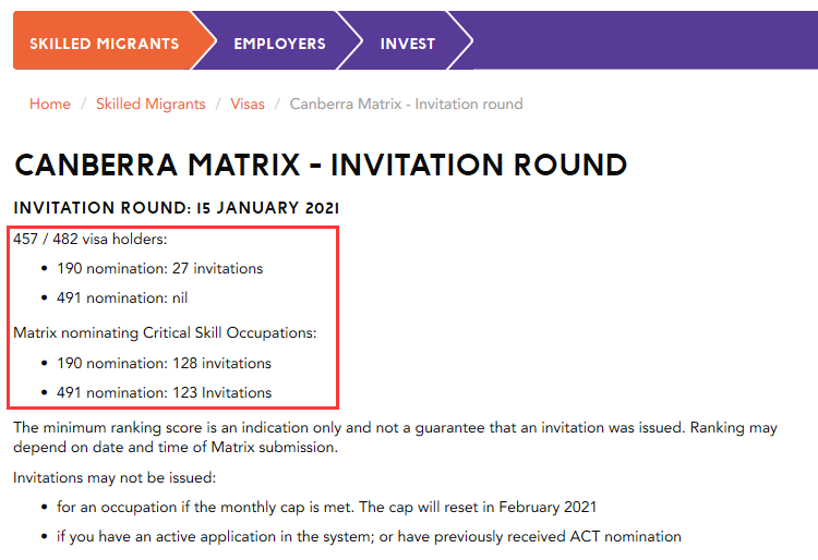 堪培拉Matrix的邀請原則是優先邀請Matrix分數較高的申請人,而且每個職業大類每月的邀請名額有限制,如果當月的邀請名額已發完,當月將不再發出邀請。所以,只有在本組職業類別中分數越高,排名越靠前,才更有機會獲邀。