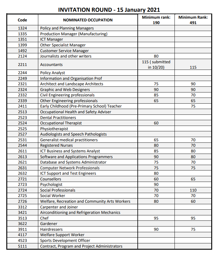 根據本輪邀請情況來看,各職業邀請分數參差不齊,跨度較大,190和491均低至60分,高至115分。2211會計190和491均需115分,190邀請至2020年10月遞交的Matrix;新增的2339其他工程僅需65分即可獲邀;ICT類職業邀請分數較之前有所提高。