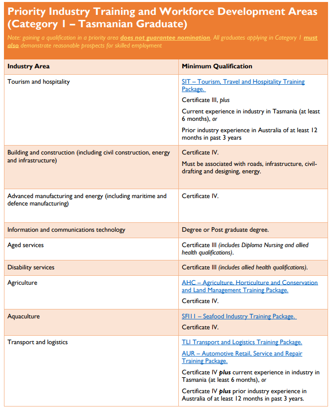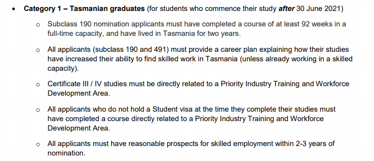 4. 190和491的所有申請者,在完成學業時若沒有持有學生簽證,則所學課程必須與塔州優先發展行業緊密相關。