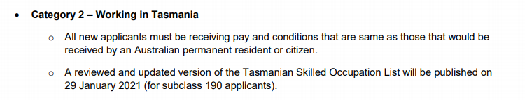 2. 塔州技能職業清單TSOL清單將在2021年1月29日公布(僅適用于190申請人)。